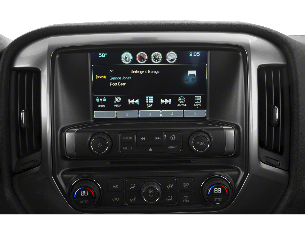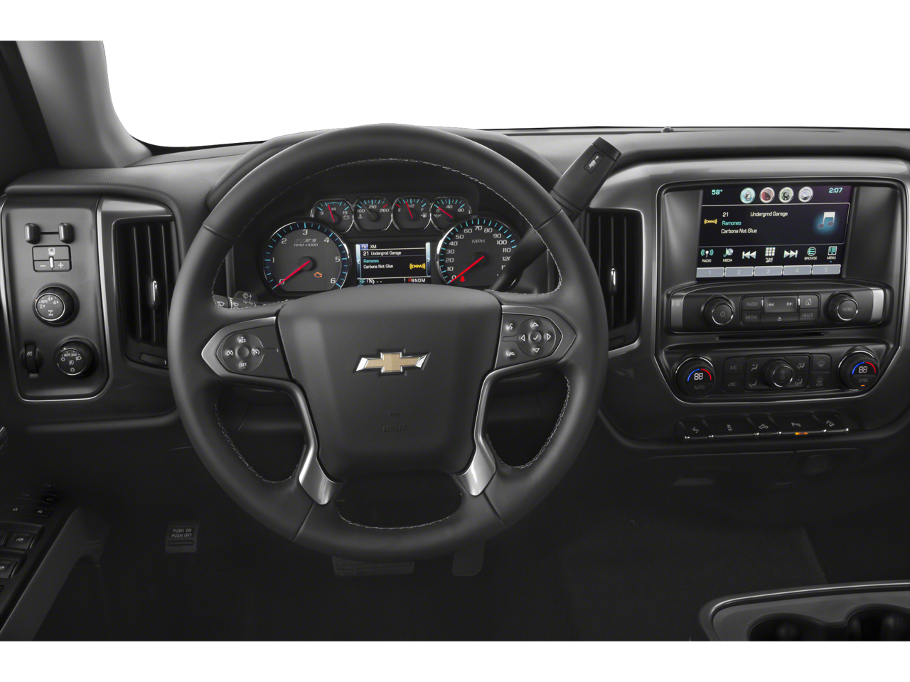 - Audio system, Chevrolet Infotainment System with 7" diagonal color touch-screen, AM/FM stereo with seek-and-scan and digital clock, includes Bluetooth® streaming audio for music and select phones.